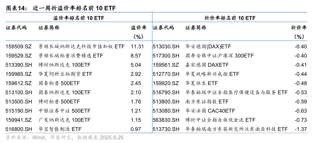 ETF折溢价:少数QDII ETF溢价率仍较高,但在逐步回落